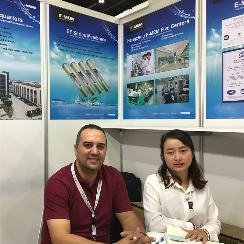 杭州易膜環(huán)??萍加邢薰荆ㄒ韵潞喎Q:易膜環(huán)保)多次受邀參加中東迪拜能源、環(huán)保、水處理展覽會。2019年10月21-23日,第21屆WETEX能源、環(huán)保、水處理產(chǎn)品展在迪拜國際會展中心盛大召開。易膜環(huán)保作為參展方之一,一如既往帶著公司膜產(chǎn)品參與此次盛會,在展會上向中東地區(qū)客戶展示了易膜環(huán)保自主研發(fā)的膜產(chǎn)品和水資源綜合利用解決方案。在此次參展過程中,許多外國參展專家被易膜環(huán)保膜產(chǎn)品介紹吸引,紛紛來到易膜環(huán)保展位進(jìn)行學(xué)習(xí)交流,易膜環(huán)??偨?jīng)理王文忠和營銷部經(jīng)理王云向他們介紹易膜環(huán)保公司核心以及公司產(chǎn)品。他們在贊同易膜環(huán)?!安煌煌ぁ庇喼苹?wù)理念的同時(shí),也紛紛肯定了易膜環(huán)保的膜產(chǎn)品,為后續(xù)合作打下了堅(jiān)實(shí)的基礎(chǔ)。