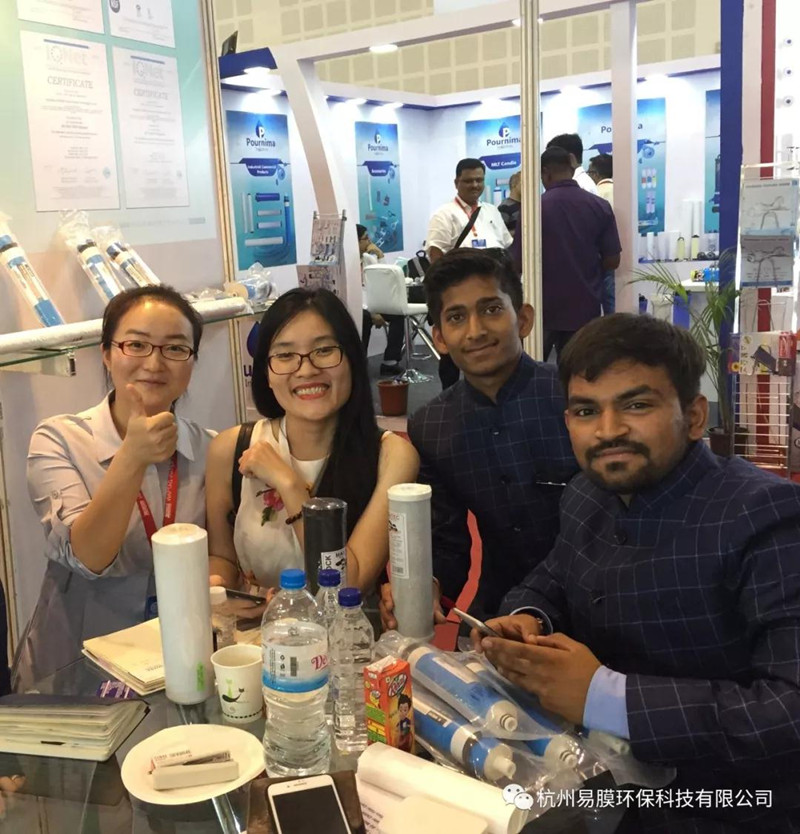 展會(huì)期間,我們?cè)谂c當(dāng)?shù)乜蛻舻慕涣髦邪l(fā)現(xiàn),近年來,家用膜的市場需求快速增長,可見印度市場的廣闊前景。同時(shí)很多地區(qū)由于受到不同自然條件下不同水質(zhì)的限制,用戶對(duì)我們提出的訂制化膜產(chǎn)品很有興趣。展會(huì)現(xiàn)場,易膜環(huán)保與印度客戶進(jìn)行一對(duì)一的分享。